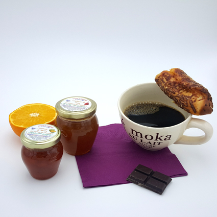 Le dosage en sucre est optimisé en fonction de la teneur en sucre des fruits pour obtenir un parfum optimum. Nos confitures ne contiennent ni épaississant ni gélifiant, seule de la pectine de fruit (pomme) est rajoutée pour les agrumes et pour les fruits ne contenant naturellement pas de pectine.
